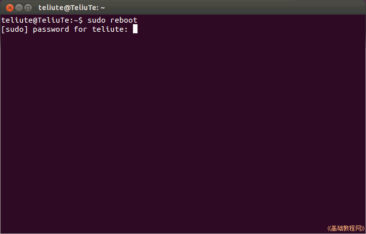 4)输入命令 sudo reboot 然后按回车键是重启动命令;