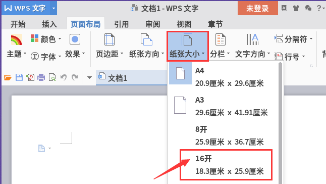 4、再点“纸张大小 - 16开”,16开小纸就够了;