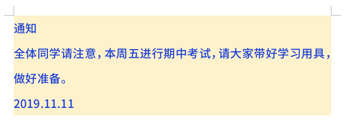 写上一段期中考试的通知;
