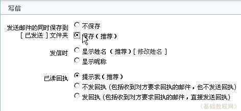 在选项中可以更改密码、设置签名,选择保存已发送选项等等,下面我们来看一个练习;