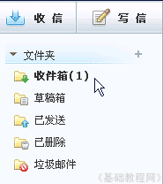 3)左侧是邮箱文件夹,电子邮箱中一般有收件箱、草稿箱、已发送等等文件夹,用来存放相应的邮件;