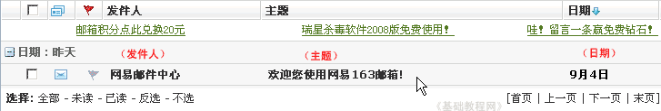 5)在邮件的主题“欢迎您使用网易163邮箱!”上点一下,就可以打开这封邮件;