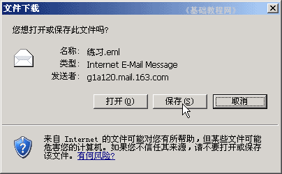 4)点击“下载邮件”菜单,出来一个下载对话框,点“保存”按钮,找到自己的文件夹,然后点保存就可以了;