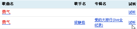 3、这时候下面就会搜出许多来,每首歌后头都有一个试听;