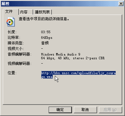 6、也可以在播放器上单击右键,选择“属性”,复制中间最长的那一串地址;