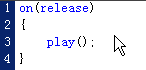 一共四行,两个大括号各占一行,代码主要是好看,所以不必挤到一块儿,代码的意思是:当点击鼠标后,执行播放语句(play);