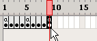 4)在时间轴上选择最后一帧,打开“库”面板(Ctrl+L),找到里头的replay元件,把它拖到工作区中,调整好位置;