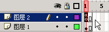 在第2帧插上单击鼠标右键,选择“插入帧”命令,加长一下动画,保存一下文件;