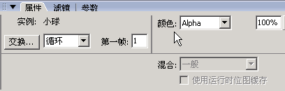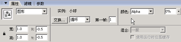 按Ctrl+L打开库,向工作区中拖入一个小球元件,对齐到中央,打开属性面板,在颜色里把Alpha调为100%,