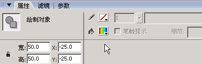 在属性面板中将宽和高都改成50,将边框色设为无,在内部填上右下角的彩色渐变色,在对齐面板中,把它对齐到中央,以“鼠标跟随”为文件名,保存文件到自己的文件夹;