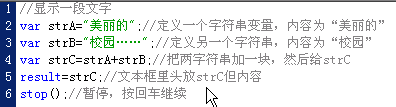 第5句是赋值语句,把变量strC的值传递给result,它是动态文本框的变量名;