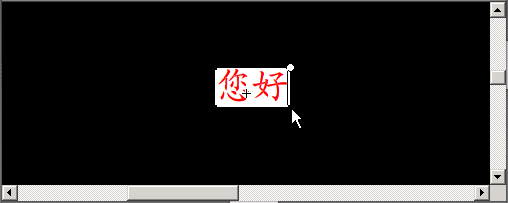 ,单击选中“您好”,先把它拖到工作区里,再把它移到工作区外面的正上方,文字这时在黑色上面的灰色里;