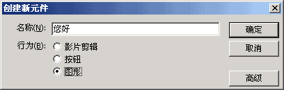 4)再单击“插入”菜单选择“新建元件”,把名称改为“欢迎”,选择“图形”,单击“确定”;