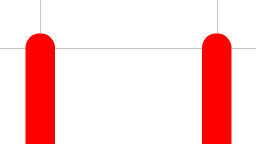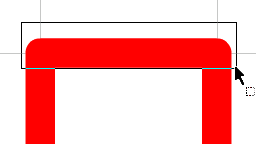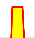 ,选择边框色为红色,填充色为黄色,绘制一个网格宽,八个网格高的矩形,用放大镜工具把上面两个顶点框选一下,放大;