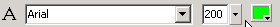 ,在下边的属性面板中,将字体设为“Arial”,字号改为200,颜色为绿色,在工作区中单击鼠标,输入大写字母“L”,