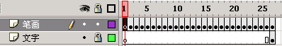 然后再添加一层图层2,把名称改为“笔画”,它自动按照图层1加长到27帧,但是只有第一帧是关键帧,其他都是过渡帧,选中第27帧,单击鼠标右键,选择“转换为关键帧”,