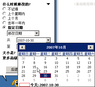 2)按时间搜索,在下面的时间选项中可以设定时间范围,