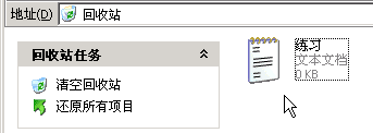 5)瞄准这个“练习”文件,敲右键选择“删除”命令,(如果选择“还原”命令,可以把文件恢复到原来位置);
