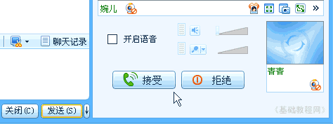 3)在好友的面板里也出来一个侧边栏,提示“接受”或者拒绝,点击“接受”同意视频;