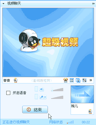 6)在下面有自己的小图像,中间有“结束”按钮,下边有一个网络状态提示;