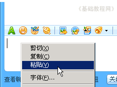 3)还有一种方法是,在一个打开的图片上点右键,选“复制”命令,然后到输入框里点“粘贴”,也可以把图片放到输入框里来,一般网页里可以找到许多小图片,