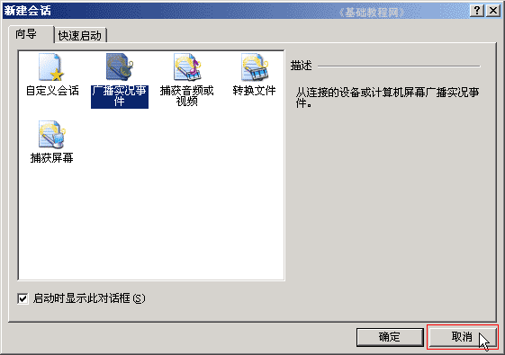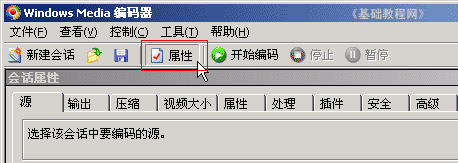 1)点“开始-所有程序-Windows Media-Windows Media 编码器”,启动编码器,出来一个“新建会话”面板;