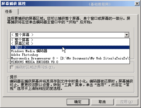 本节学习了用Windows Media Encoder录制屏幕的基本方法,如果你成功地完成了练习,请继续学习;