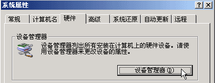 1、进到系统以后,在“我的电脑”图标上单击右键选“属性”,会出来系统属性面板,在上边选“硬件”标签,然后找到“设备管理器”按钮;
