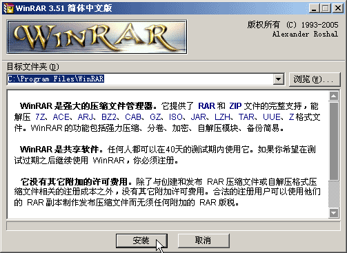 1)双击安装文件,出现第一个安装界面,上面是安装位置,中间是简介,点下面的“安装”;