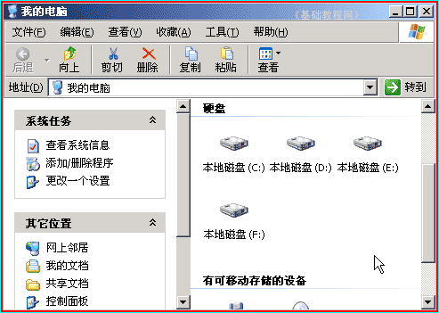 1)在桌面上双击“我的电脑”图标,打开窗口,如果窗口太大,可以适当缩小一些;