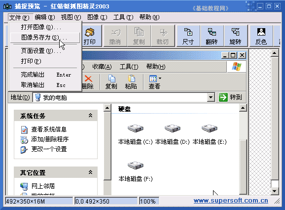 4)点菜单“文件-图像另存为”,出来一个保存对话框,如果文件菜单不让点,可以先点一下“编辑”菜单;